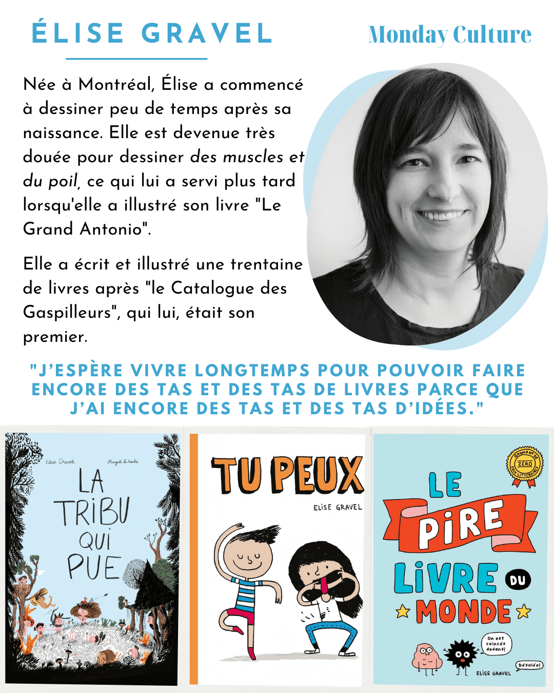 Venez découvrir ou redécouvrir les albums d'Élise Gravel à Queen Elizabeth Park !