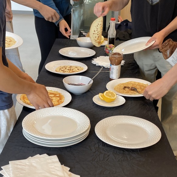 Students participate in a hands-on baking or cooking workshop doing a Francophone recipe. A chef demonstrates the recipe, students prepare it and enjoy it, to sharpen autonomy and team work.