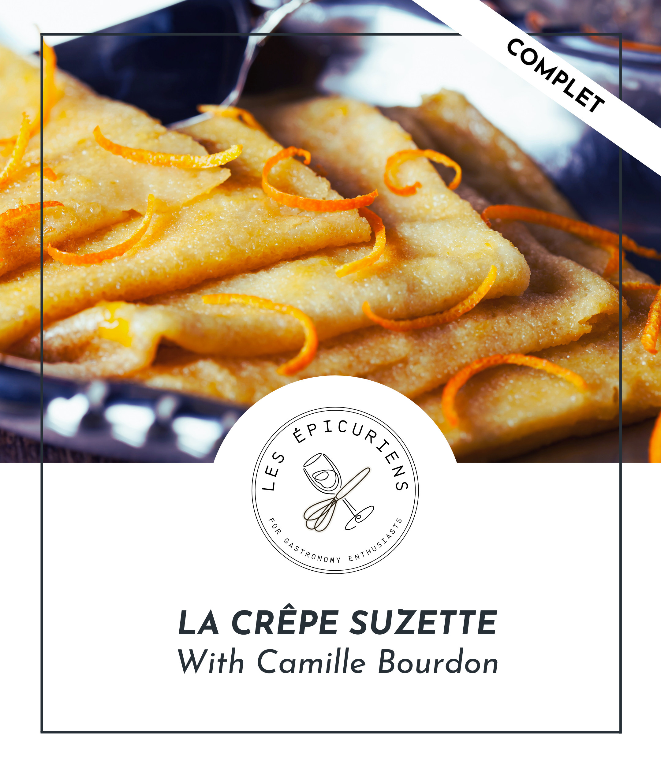 Rejoignez notre cheffe pâtissière Camille Bourdon pour un moment gourmand et convivial autour de la célèbre Crêpe Suzette ! Dans une atmosphère chaleureuse, découvrez les secrets de cette crêpe emblématique : fine et délicate, nappée d’une sauce au beurre, au sucre et à l’orange, légèrement flambée pour un spectacle et un goût inoubliable.