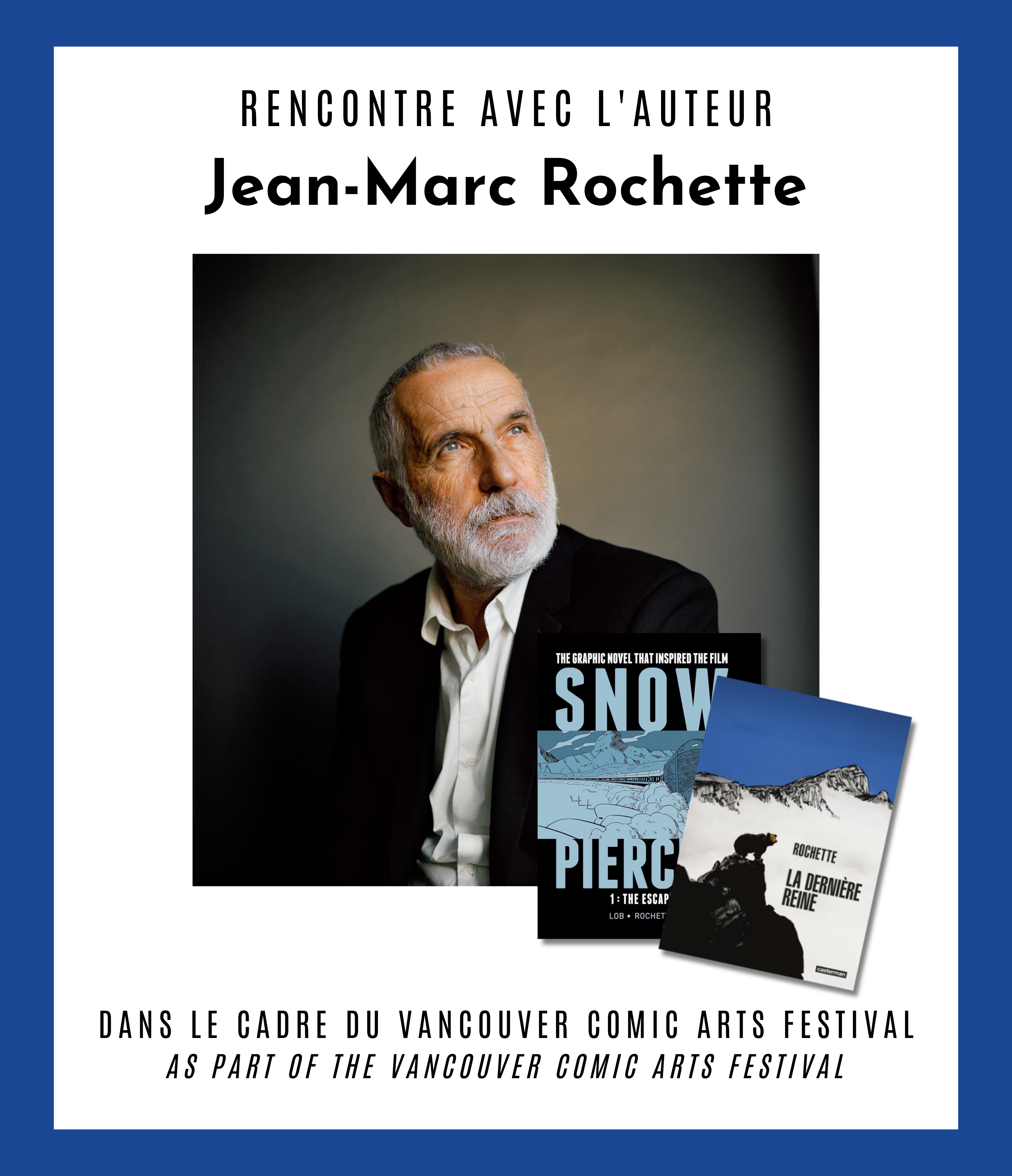Alliance Francaise Vancouver and the Embassy of France in Canada present events with French author Jean-Marc Rochette, author of the mythic comic "The snowpiercer", as part of the Vancouver Comic Arts Festival.
